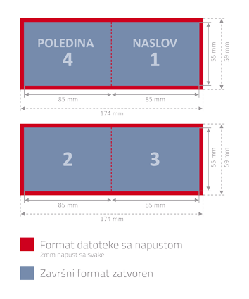 Tekstove,logo..- odmaknuti od kraja završnog formata 3mm, da ne završe pod "nožem" i biti će odstranjeni.